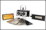 Antigua cámara estereoscópica Jules Richard Glyphoscope ca.1915 con dos chasis, cristal de enfoque y raro accesorio de filtros.