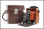 Rara cámara plegable de placas 6x9 circa 1900, fuelle burdeos y obturador operativo. Pieza muy conservada y atractiva.