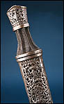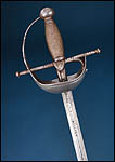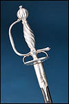 Empuñadura o montura: está formada por el puño (zona que se agarra con la mano), revestido en ocasiones por la lija (piel de animal, generalmente de tiburón, que la reviste) y el torzal (alambre que fija la lija al puño); el pomo (remate del puño en forma de bola), la guarnición o guardamano (parte que protege la mano, formada por elementos conocidos como gavilanes) y la cruz (parte que separa el puño de la hoja, y que en ocasiones puede tener forma de cazoleta).