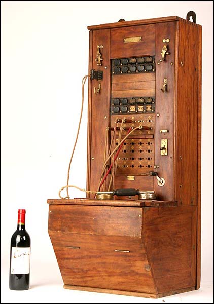 Gran centralita telefónica francesa, fabricada entre 1910 y 1920. Pesa más de 25 kilos y mide 100 cms de alto x 39 cms de profundidad x 45 cms de ancho. Las fotos hablan por sí solas.
