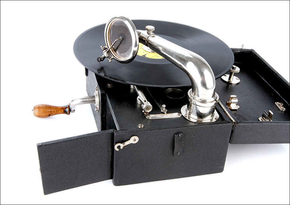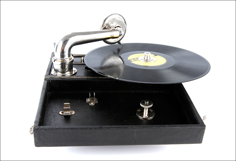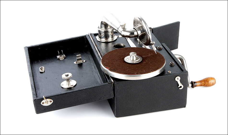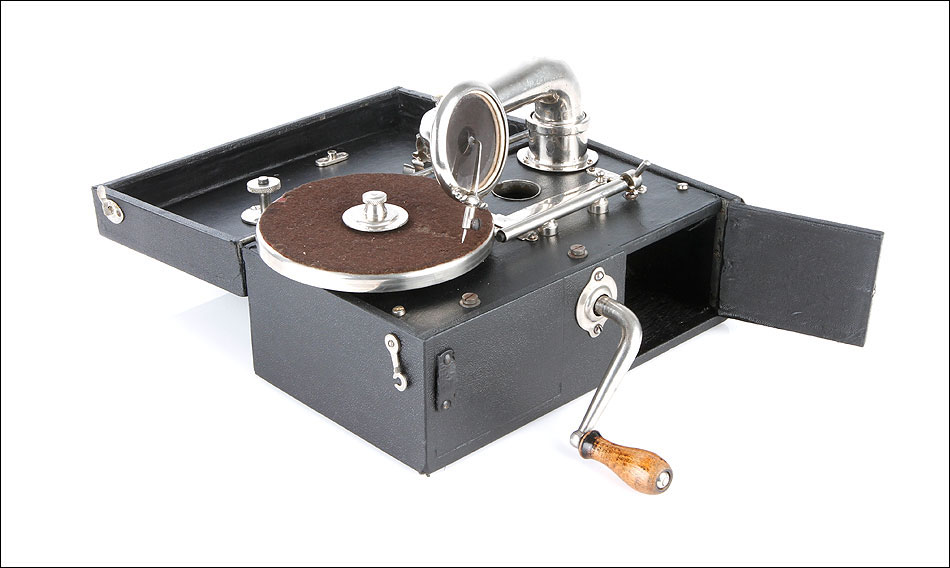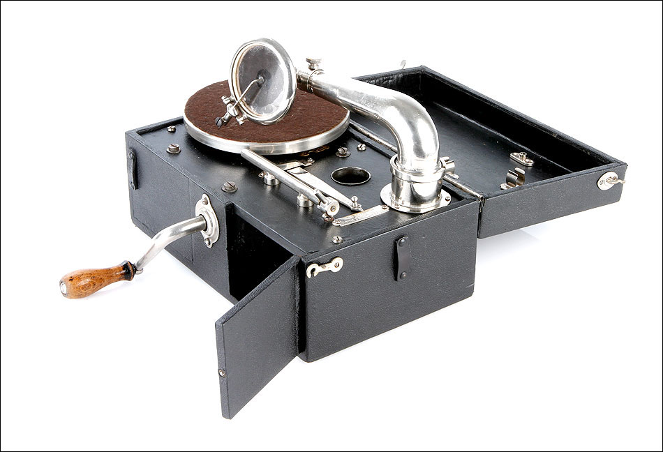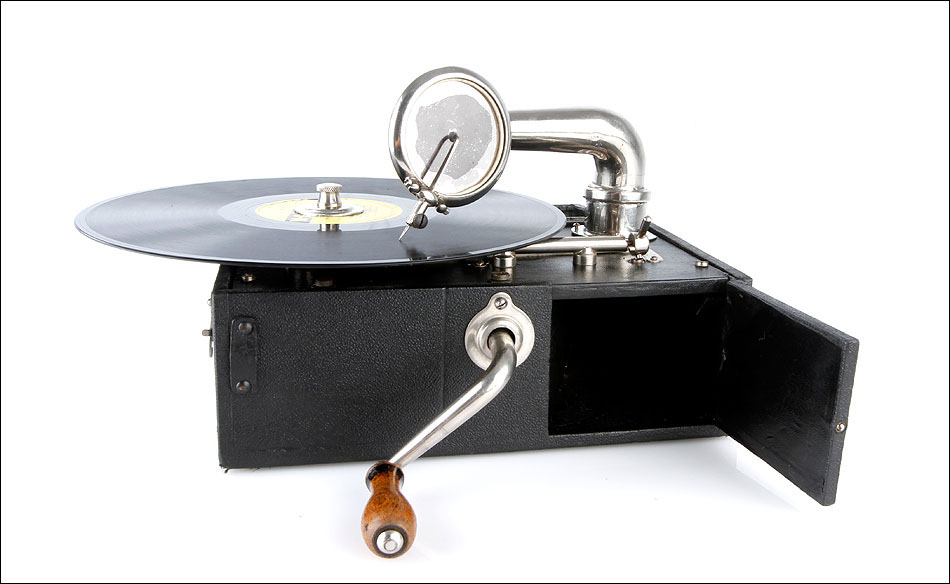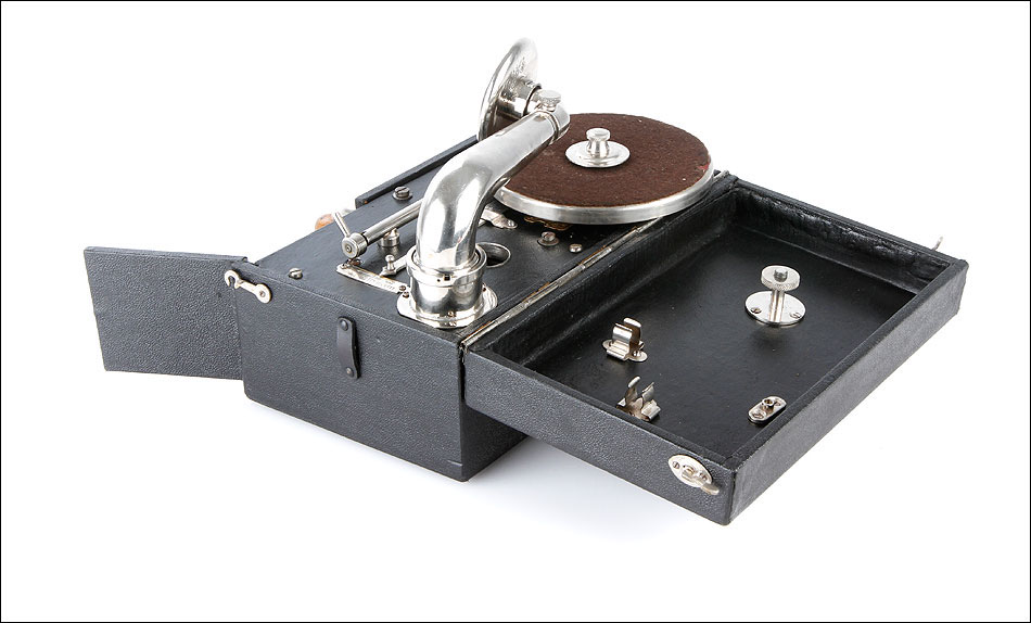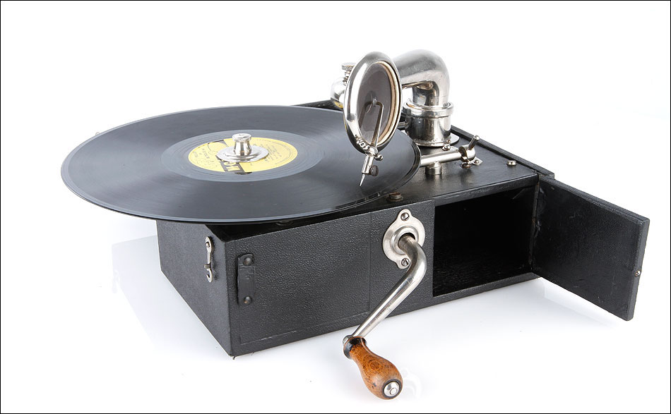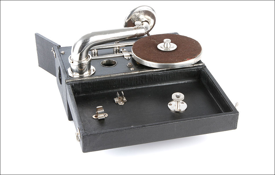 Antiguo Gramófono Portátil Pathé en Excelente Estado. Modelo Muy Raro. Francia, 1920 |