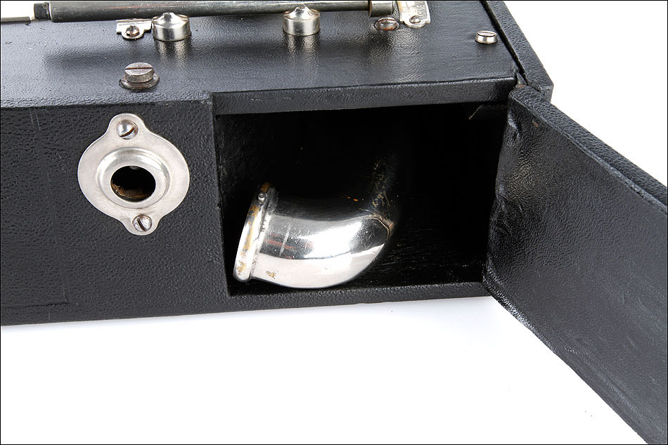 Nostálgico gramófono portátil antiguo Pathé, un modelo sumamente raro que ha llegado a nosotros en excelente estado de conservación. El gramófono fue fabricado en Francia circa 1920 y funciona muy bien. El motor se ha revisado y puesto a punto, de manera que a día de hoy puede reproducir discos antiguos sin problemas. El gramófono suena estupendamente y ofrece un funcionamiento suave y fiable; además, el resto de las piezas también han sido cuidadosamente restauradas para mostrar el magnífico aspecto que podemos apreciar en las fotografías. Se trata de un modelo portátil de pequeño tamaño, similar a los gramófonos “cámara” (cameraphones) que tan populares fueran en la primera mitad del siglo XX.