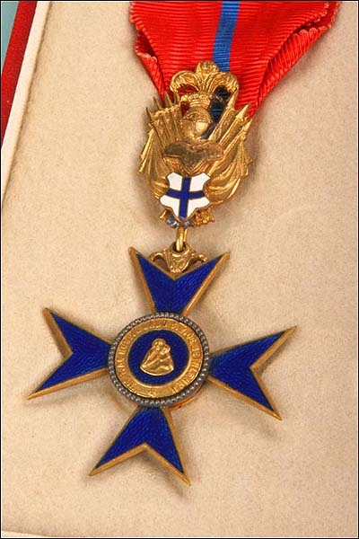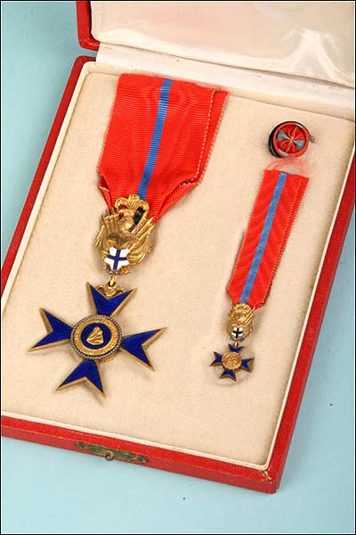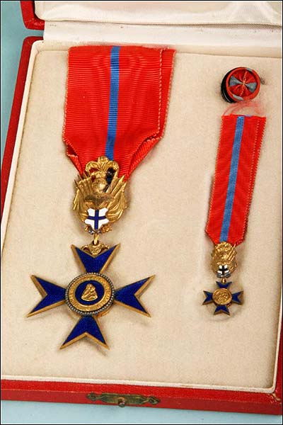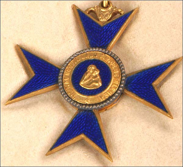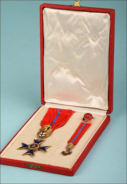 Orden de nuestra señora de Belén. Orden militar hospitalaria con su miniatura y miniatura de ojal. Con su estuche original y completa.