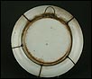 El plato es de porcelana blanca y está decorado a mano con escenas y motivos en azul profundo, formando un estilo clásico en el arte oriental de la porcelana. La pieza muestra solo algunos finos pelos y ligeros desperfectos en el borde, pero en conjunto su belleza ha permanecido íntegra y puede admirarse sin trabas. Si damos la vuelta al plato, en su base veremos la marca de horno: un color marrón tostado que tiñe la base circular y se produce por efecto del calor generado en el horno de cerámica durante la cocción de las piezas.