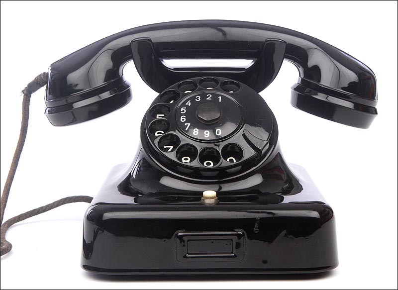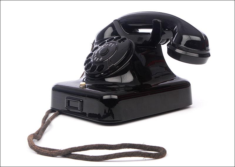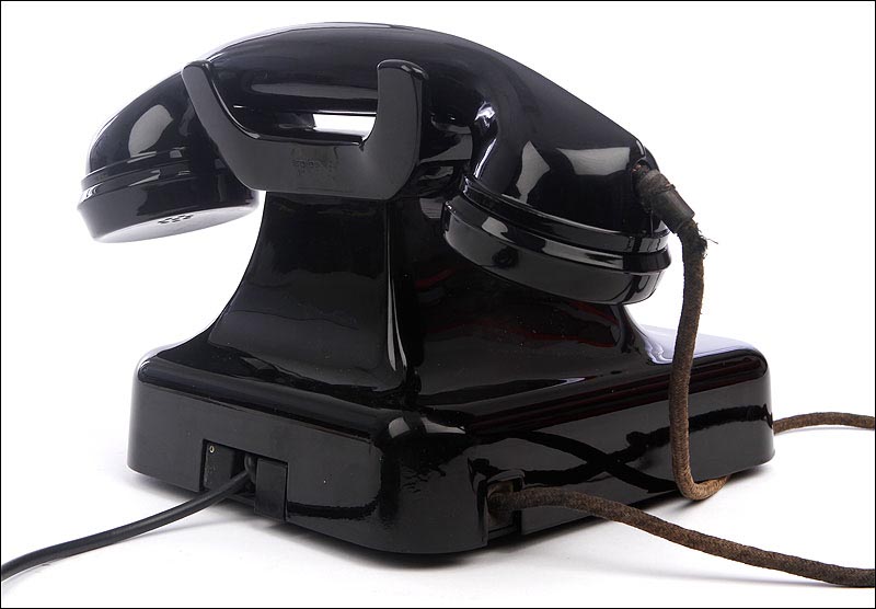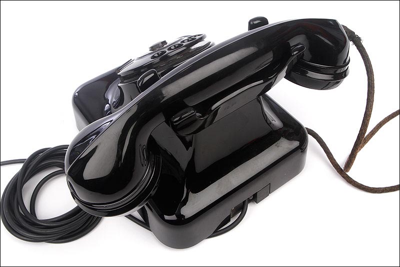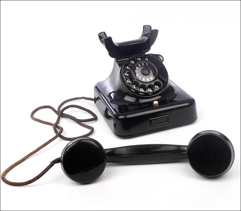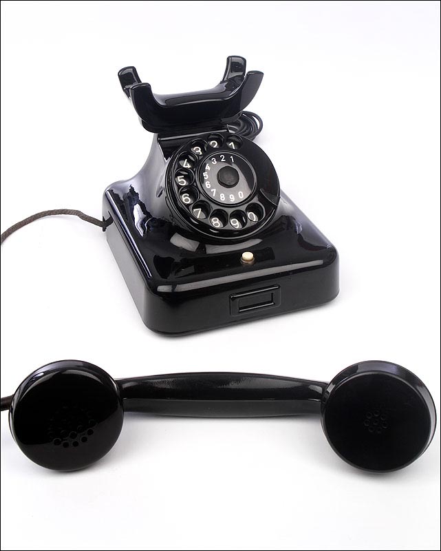 Teléfono vintage de baquelita negra original de los años 50 del siglo XX. Este teléfono fue fabricado en Alemania y se conserva en muy buen estado, funcionando además a la perfección. Su mecanismo ha sido adaptado para poder ser conectado a las líneas telefónicas que operan en la actualidad. Lleva enganche para teléfonos de pulso, es decir, para las líneas más habituales en las viviendas, aunque no puede ser conectado a líneas digitales (Vodafone y Orange). Por lo demás se trata de un artículo totalmente funcional, que hará revivir la sensación inigualable del marcaje por rueda y aportará un toque de estilo a cualquier estancia.