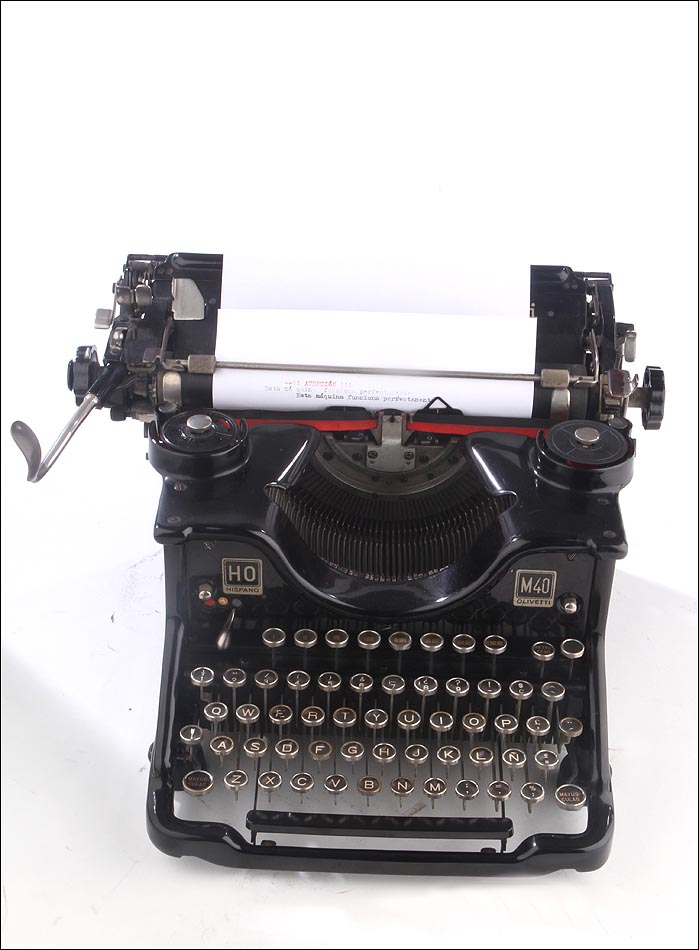 Preciosa máquina de escribir española Hispano Olivetti de los años 40, de hermoso diseño y en muy buen estado de conservación. Esta máquina es el modelo M40, todo un clásico en el campo de las máquinas de escribir europeas. La máquina tiene sólido cuerpo de hierro forjado con acabado lacado en negro, en óptimas condiciones. También muestra aberturas laterales y trasera por donde se puede apreciar el complejo mecanismo. Su funcionamiento es magnífico, pudiendo utilizarse para redactar documentos igual que el primer día de uso. De esta manera, además de ser una pieza muy decorativa esta máquina de escribir es un artículo plenamente funcional.