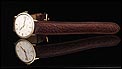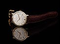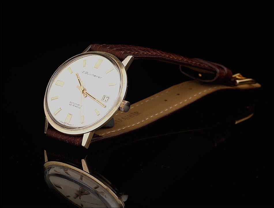 Fantástico reloj de pulsera de caballero fabricad en oro de 14K. Este reloj es una auténtica joya realizada por Bucherer en los años 50 del siglo XX. El reloj se muestra en muy buen estado y ha sido puesto a punto, de manera que hoy día funciona perfectamente. Su diseño es característico del estilo de mediados del siglo XX, con una elegancia sencilla y equilibrada que lo convierte en una pieza de belleza intemporal. La pulsera de piel es nueva pero combina a la perfección con el elegante diseño del reloj y su acertada combinación de tonos.