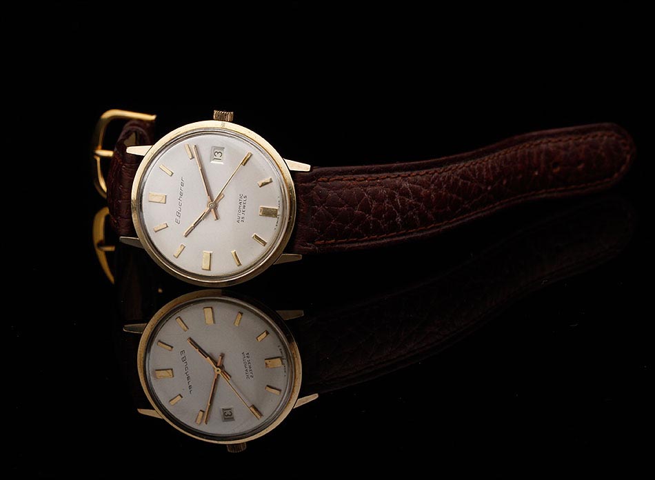 Reloj de Pulsera de Oro 14K para Caballero, Fabricado en Suiza por Bucherer en los Años 50. Funcionando |