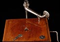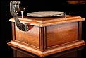 Este impresionante gramófono de trompeta es una pieza singularmente llamativa por la belleza de su caja de madera y su espectacular trompa de metal, decorada imitando madera de especies nobles. Se trata de un artículo con más de cien años de antigüedad, que ha llegado a nosotros en muy buen estado y funcionando de maravilla. El motor del gramófono no es el original del aparato, pero sí es de la misma época. Proporciona un sonido de gran calidad, lleno de encanto nostálgico. El resto de los componentes y las piezas del gramófono son los originales y se encuentran en excelente estado de conservación.
