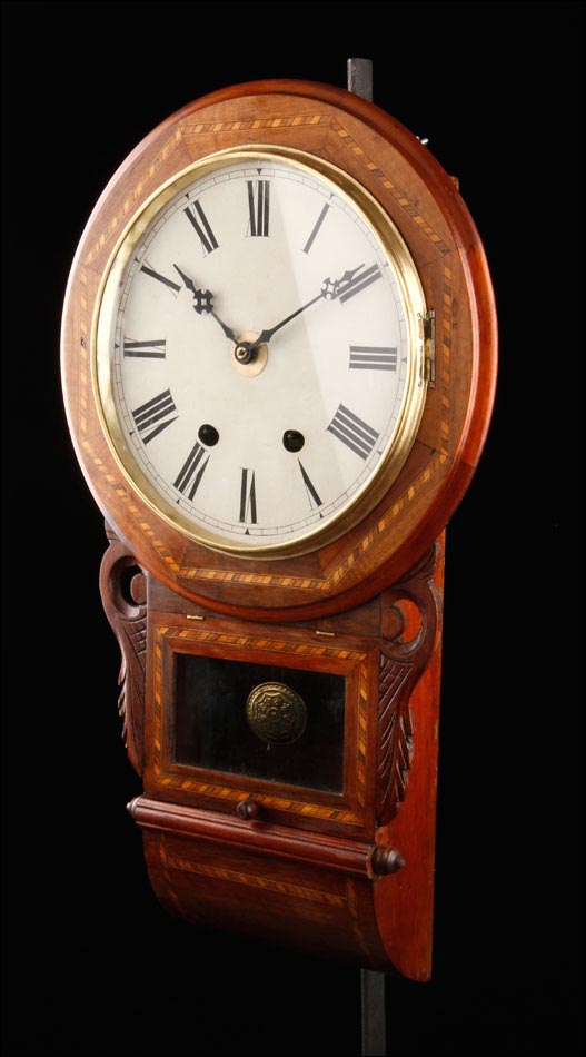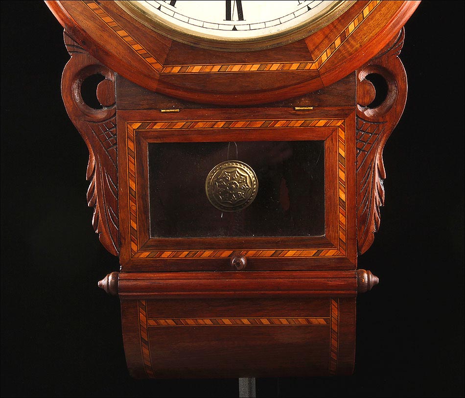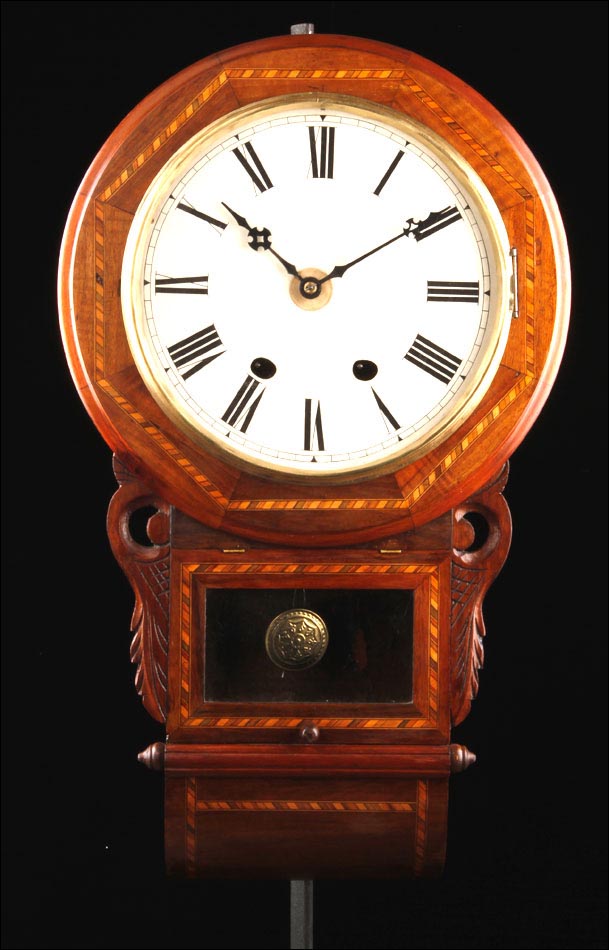 Atractivo Reloj de Pared de Madera Maciza y Taracea. Norteamérica, 1920-30 |
