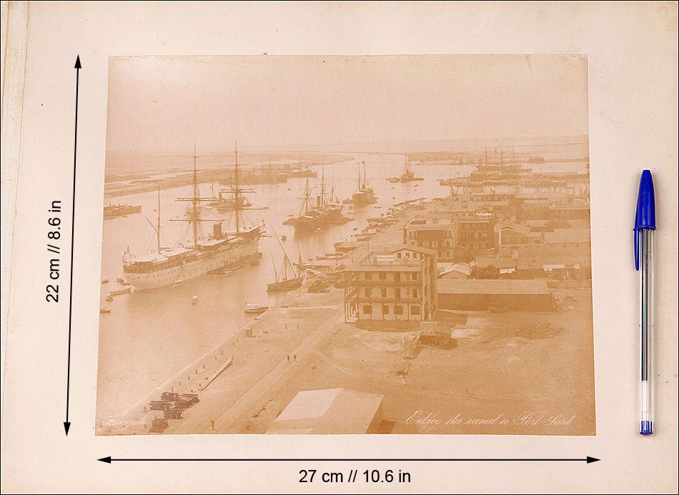 Este conjunto fotográfico no solo fascina por su estética, sino que además ofrece un recorrido visual cargado de historia. Escenarios portuarios de Port Said, embarcaciones en tránsito por el canal, estaciones de ferrocarril, retratos étnicos y caravanas en el desierto componen un relato completo y evocador. Algunas imágenes muestran también el desarrollo urbanístico y tecnológico de la región en plena época colonial. Su rareza, la autoría reconocida y el excelente estado de conservación hacen de este álbum una pieza muy deseable para coleccionistas de fotografía antigua, historiadores y amantes del orientalismo.