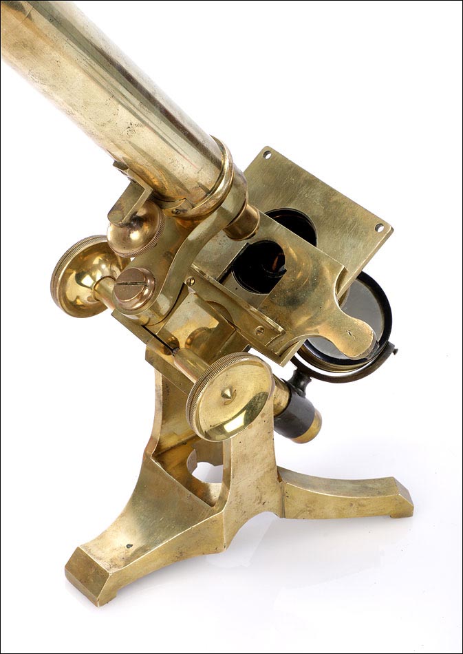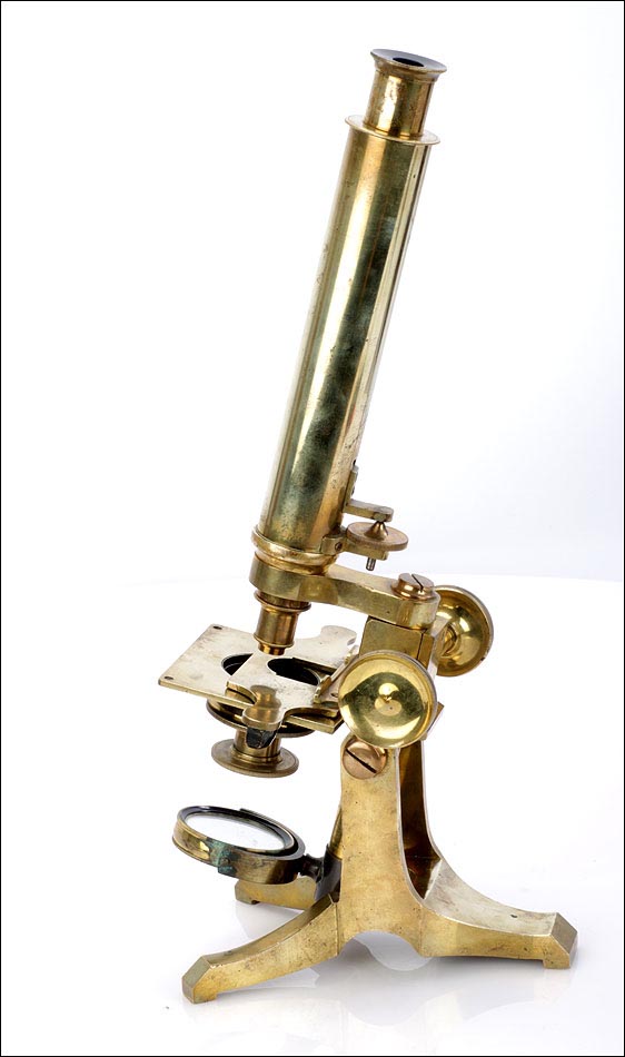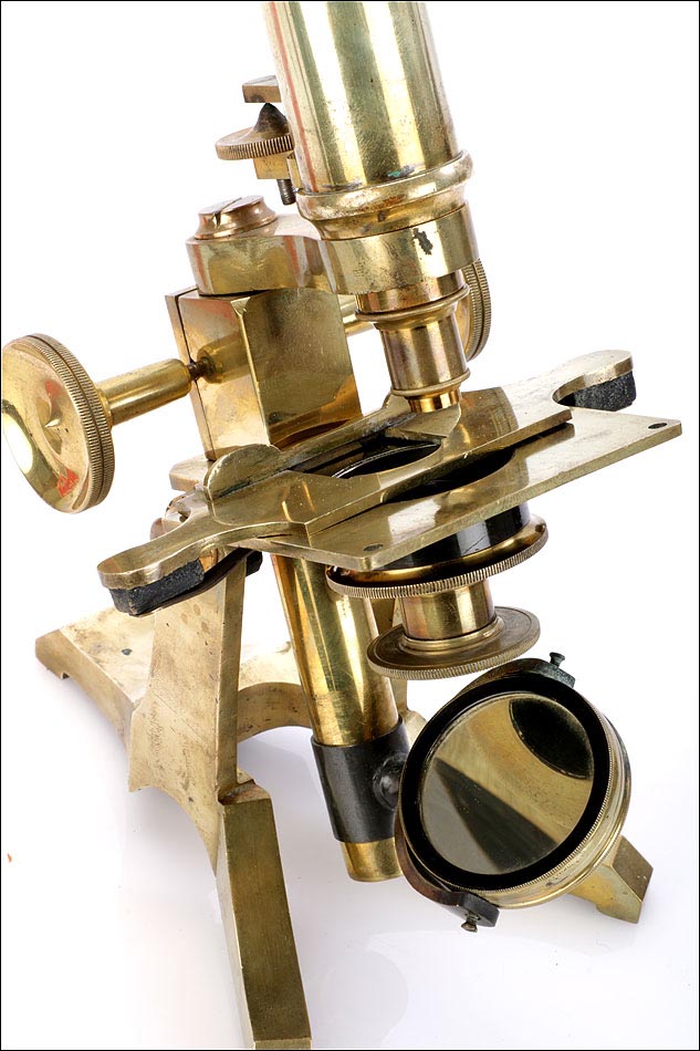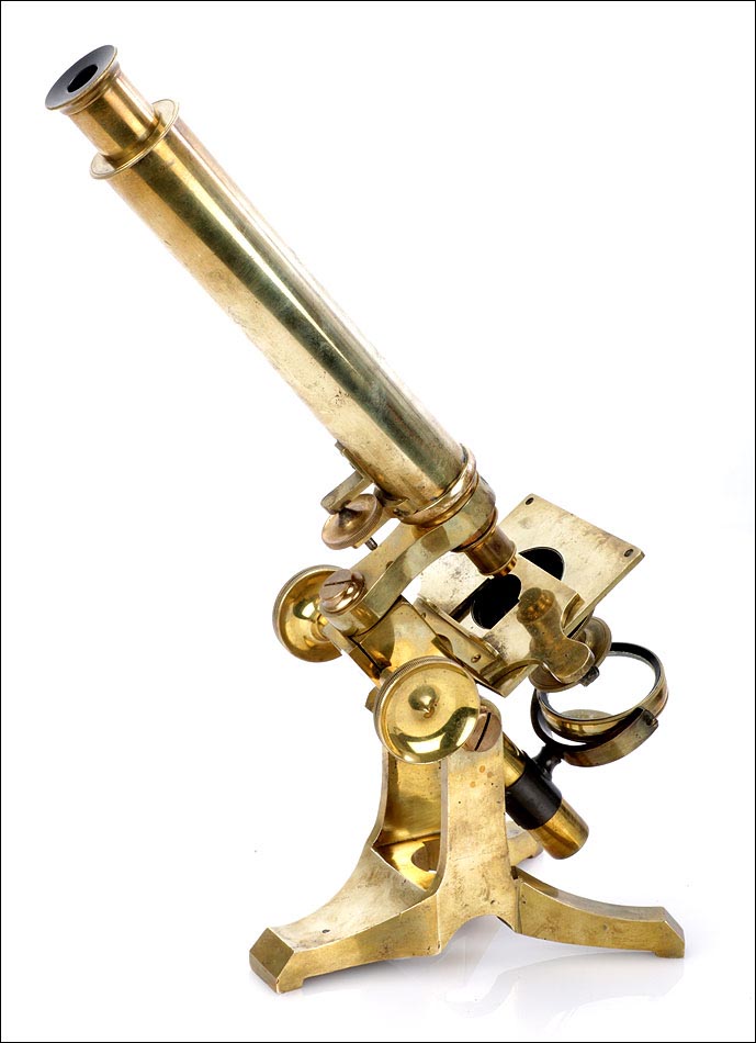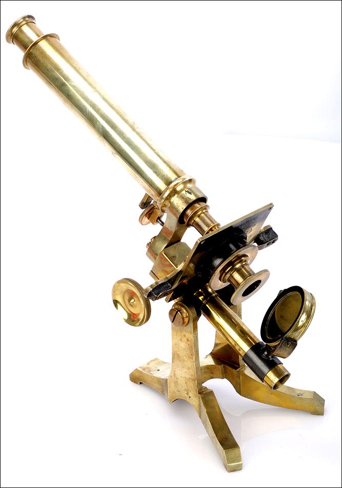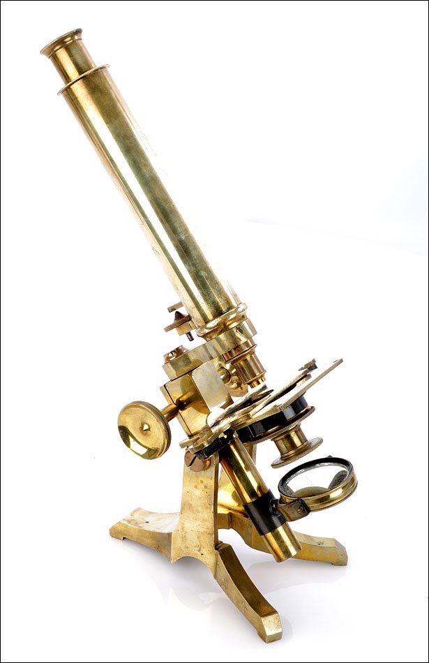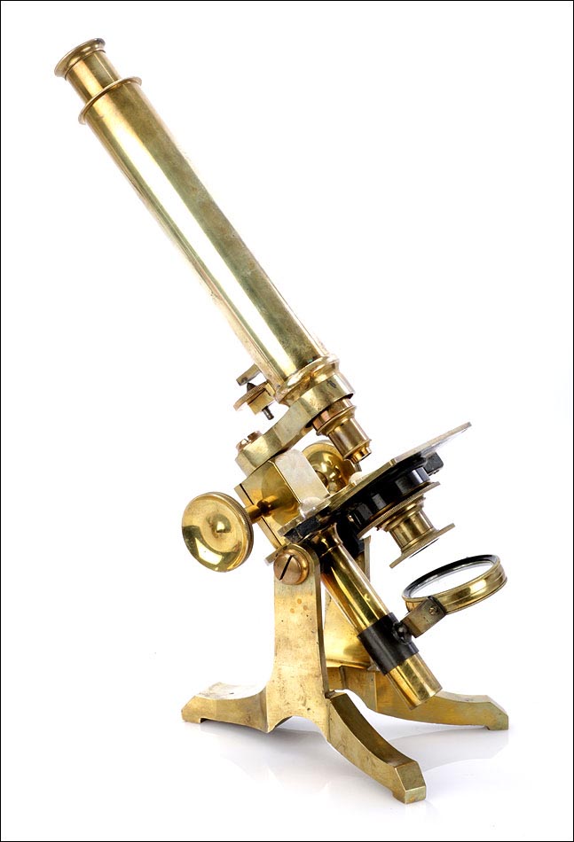 Tan bonito como interesante, este antiguo microscopio de latón está destinado a brillar en la colección de un buen amante de los aparatos científicos con más de un siglo de historia a sus espaldas.