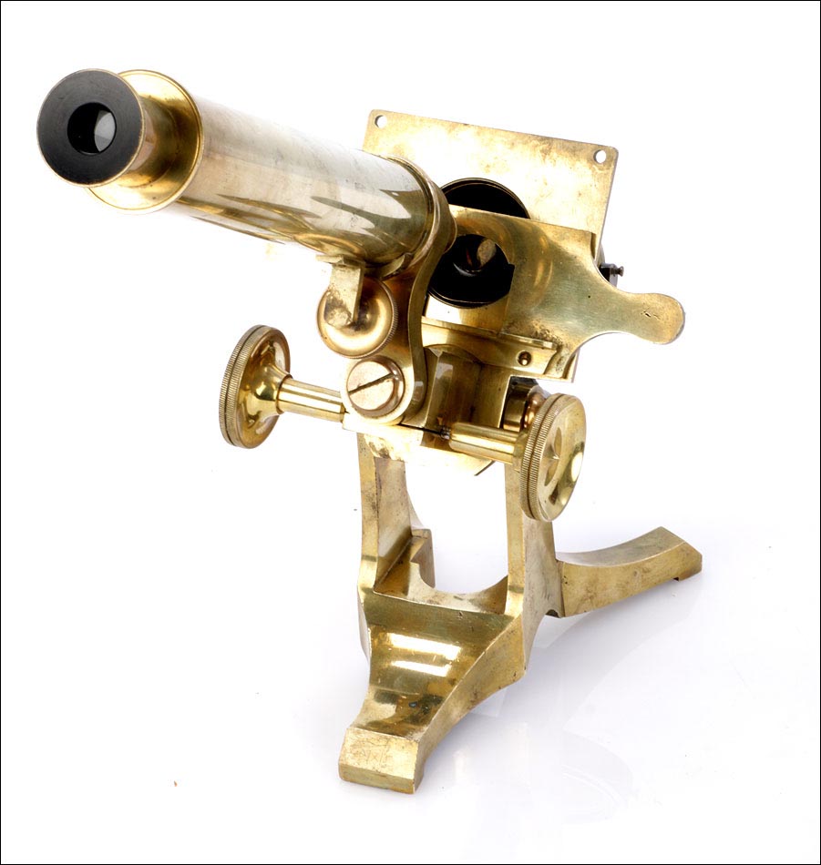 Maravilloso y antiguo microscopio de latón, un instrumento lleno de encanto y con un diseño que nos retrotrae a los laboratorios científicos de finales del siglo XIX. El microscopio fue fabricado en el Reino Unido a finales del siglo XIX (circa 1880) y se encuentra en muy buen estado de conservación. Está completo e incluye un ocular y un objetivo, ambos de época y en excelentes condiciones. Este microscopio está en estado de funcionamiento y se puede utilizar para observar muestras y preparados. Se trata de un instrumento singularmente evocador, perfecto para decorar un despacho o para formar parte de una buena colección de material científico de época.
