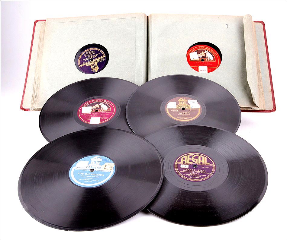 Album con 12 discos de gramófono. 78 rpm. Algunos en Catalán. Album original de época. Todos en excelente estado de conservación. Discos normales de 25 cms