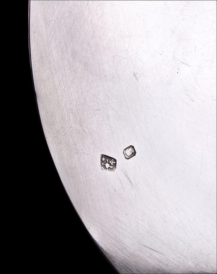 Medidas: Cáliz: Ancho: 12 cm. Alto: 22 cm. Peso: 312 g. Patena: Diámetro: 13 cm. Peso: 70 g.