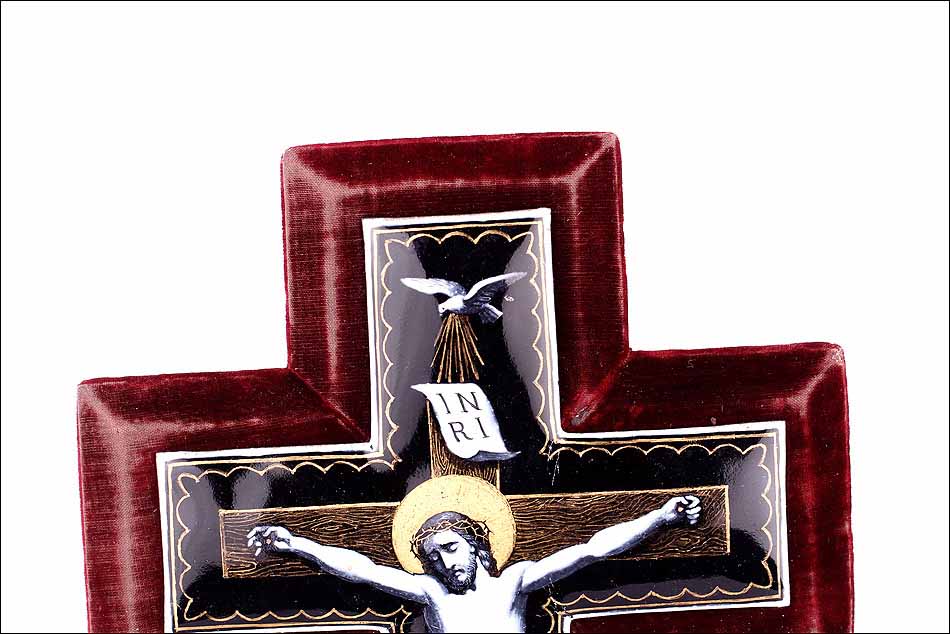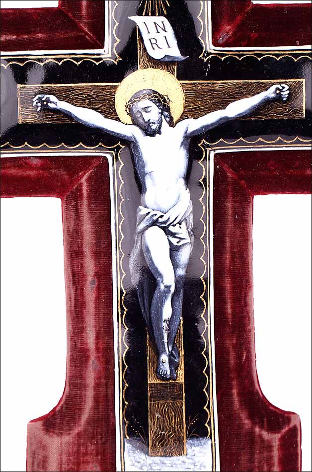 Por su gran delicadeza y magnífica factura, este crucifijo de esmalte de Limoges es toda una obra de arte religioso.