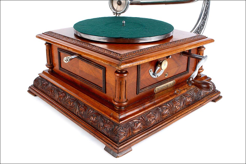 Espectacular Pathephone 8, Gran Lujo, Caja de Caoba, Fabricado en Francia Circa 1915 |