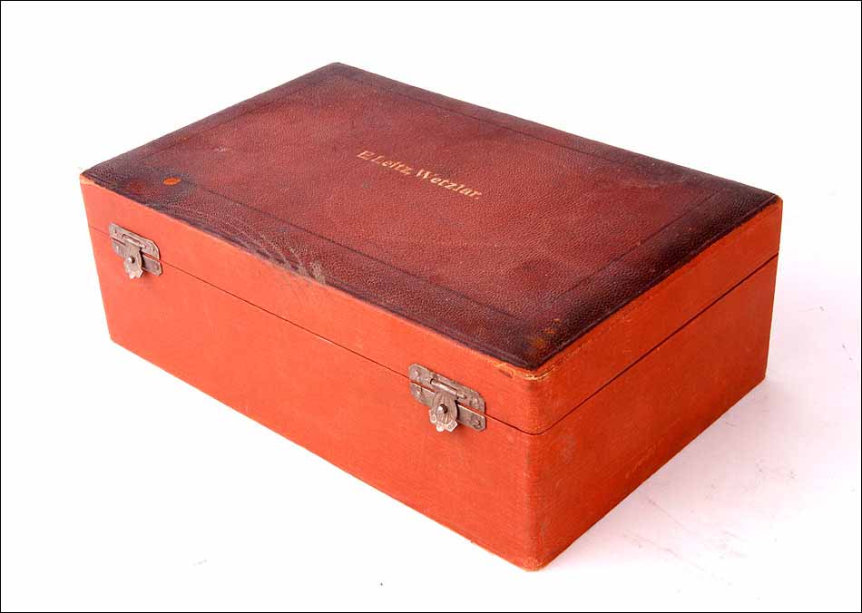 Los inicios de la célebre firma de material óptico Enrst Leitz Wetzlar se encuentran en la primera mitad del siglo XIX, cuando Carl Kellner, mecánico y matemático autodidacta, fundó el Carl Kellner Optisches Institut en la localidad alemana de Wetzlar. Tras su temprana muerte, su viuda continuó con el negocio. En 1864, el ingeniero mecánico Ernst Leitz entró en la empresa; tras solo cinco años se hizo con el control y cambió su nombre por el de Ernst Leitz Wetlzar. Leitz llevó la empresa al éxito tras introducir mejoras como la producción en serie, que logró un gran incremento del volumen de ventas a partir de 1871. Los microscopios de Leitz incluían mejoras técnicas que aumentaban su calidad, lo que hizo que para finales del siglo XIX la empresa tuviera ya un sólido prestigio a nivel mundial. Ernst Leitz murió en 1920, y la empresa pasó a manos de su hijo. Además de por la fabricación de microscopios y material óptico, la firma Leitz aumentó considerablemente su fama gracias a la producción de las célebres cámaras fotográficas Leica (abreviatura de Leitz Camera).