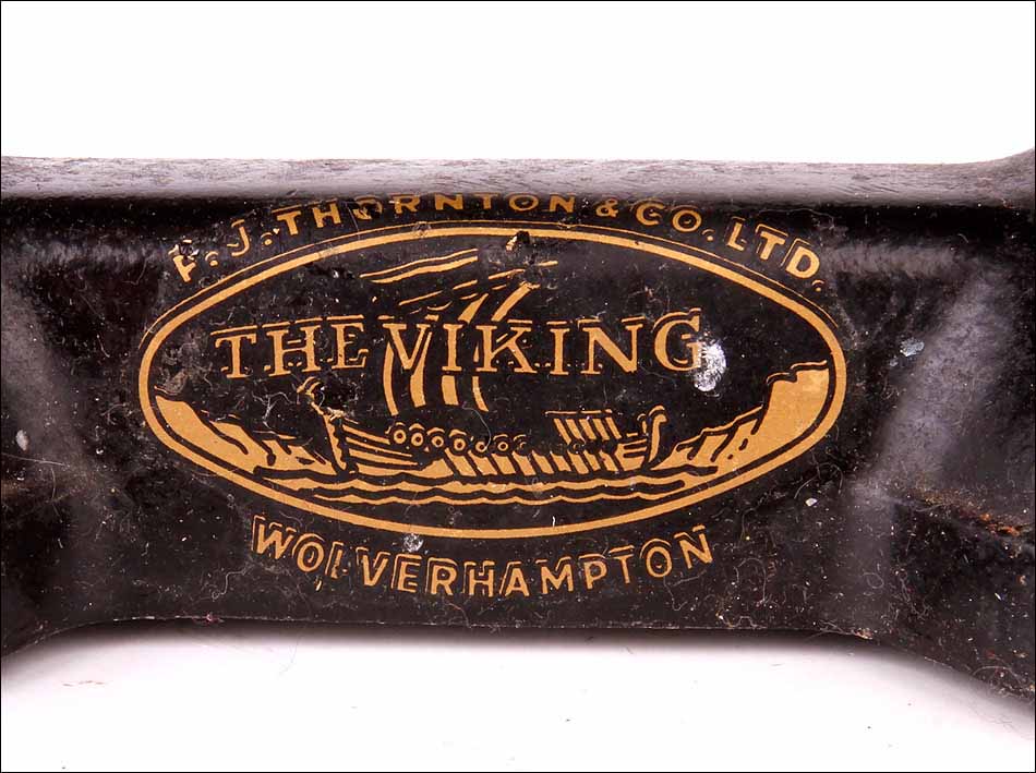 En la base de la balanza, justo en el centro podemos ver el sello original de la marca y el fabricante. Se trata de un bello logotipo de forma ovalada impreso en dorado, con la imagen de un barco vikingo surcando el mar y el nombre THE VIKING sobre él. Alrededor del óvalo aparece impreso el nombre del fabricante y su ubicación: F. J. THORNTON & CO. LTD. – WOLVERHAMPTON.