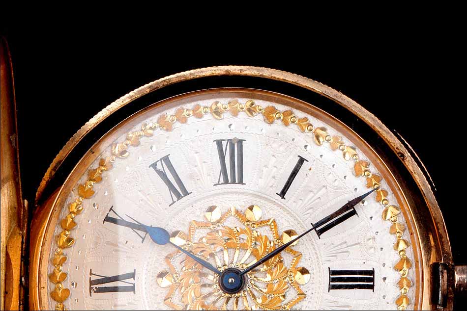 Por su bellísima factura y su innegable calidad, este reloj antiguo de oro macizo es una auténtica joya de finales del siglo XIX.