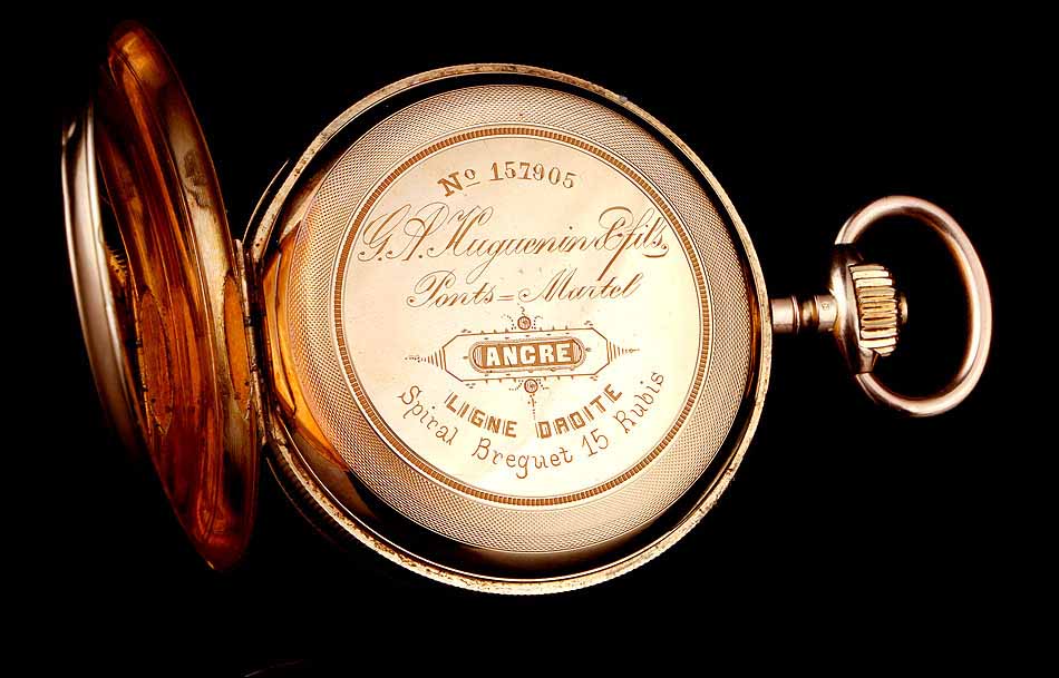 Antiguo Reloj Ginebrino Hughenin & Fils de Oro de 18 K. Funcionando. Suiza, Circa 1880 |