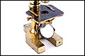 El microscopio muestra un diseño funcional, estilizado y atractivo. El latón dorado del que están fabricadas las piezas conserva el lacado transparente original en buenas condiciones. Las partes móviles se desplazan y operan con fluidez, siendo todo un placer manejar el instrumento. En la base de herradura del microscopio podemos ver el nombre del fabricante y el número de serie grabados en el metal: HENRY CROUCH LONDON – 994. Por su parte, la caja de caoba maciza donde se guarda el aparato se encuentra en muy buen estado, con el acabado exterior original y los separadores internos de madera que permiten guardar el microscopio y sus accesorios de manera fiable y segura.
