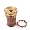 La madera de caoba que conforma el cuerpo principal del catalejo está en muy buenas condiciones, con el acabado original y pocos signos de desgaste. El cuerpo de latón más fino, que va rematado con el ocular, lleva grabada a mano una inscripción con el nombre y la dirección del fabricante: W. Harris & Son – 50 Holborn – London. Este nombre aparece también en la antigua etiqueta pegada al interior de la tapa del estuche. El estuche de guardado es una bella caja de madera de caoba maciza con los ganchos de cierre originales, perfecta para conservar el catalejo y el resto de los accesorios.