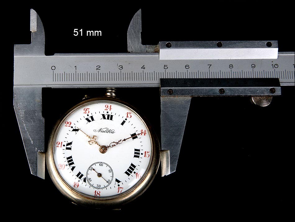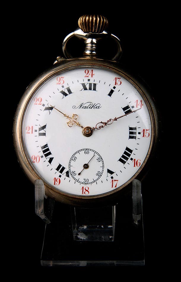 Este precioso reloj de bolsillo antiguo destaca sobre todo por su bello diseño, con grandes números negros y rojos en la esfera y elegante caja de metal plateado. Data de principios del siglo XX (circa 1900) y está en magnífico estado de conservación. El mecanismo ha sido puesto a punto al detalle, de manera que a día de hoy se encuentra en muy buen estado de funcionamiento. La esfera blanca lleva la palabra Natika escrita en la esfera en delicadas letras negras. En conjunto, este reloj es una pieza que destaca por su elegante simplicidad y su buen funcionamiento.