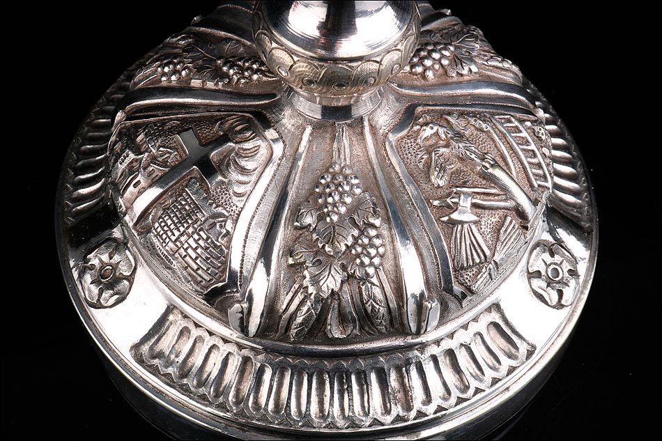 La evocadora y original decoración de este cáliz antiguo lo convierten en una pieza hermosa y muy especial.