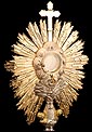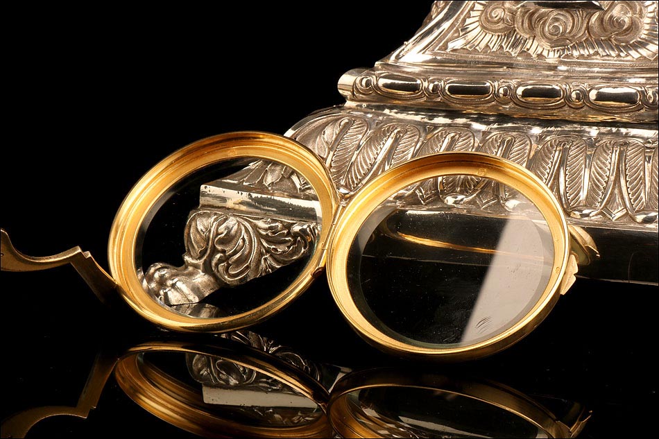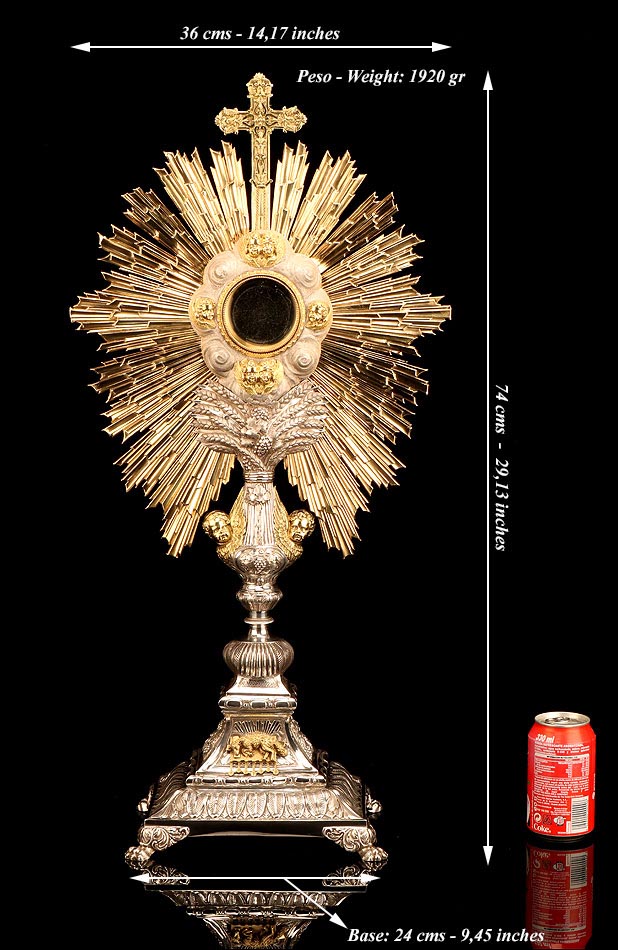 Antigua custodia de plata maciza de gran tamaño. Completa y con Estuche. Siglo XIX. |