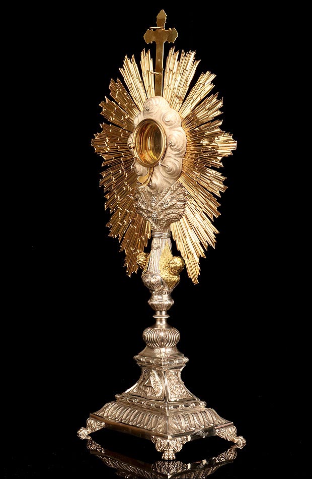 Esta impresionante custodia antigua de plata maciza es una auténtica joya, digna de figurar en el museo de una iglesia o una catedral.