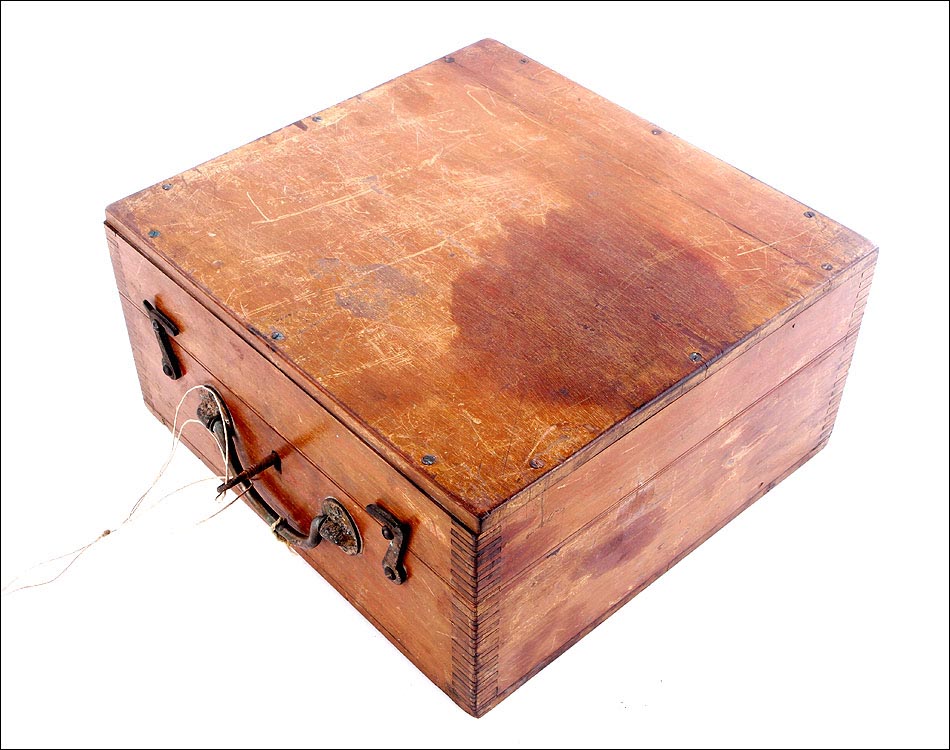 La placa está magníficamente conservada, con la inscripción completa y legible. Junto a ella, el arco graduado de latón lleva grabado el nombre del fabricante y la ubicación de la fábrica: HEATH & CO. - NEW ELTHAM - LONDON S.E.9. El sextante se completa con una pieza de madera fijada en su cara posterior, que permite mantenerlo en pie. El estuche donde se guarda está completo y conserva la cerradura y la llave originales, en estado de funcionamiento. Lleva finas uniones artesanales en cola de milano y mantiene el asa original y los ganchos para el cierre.