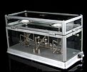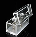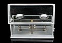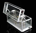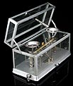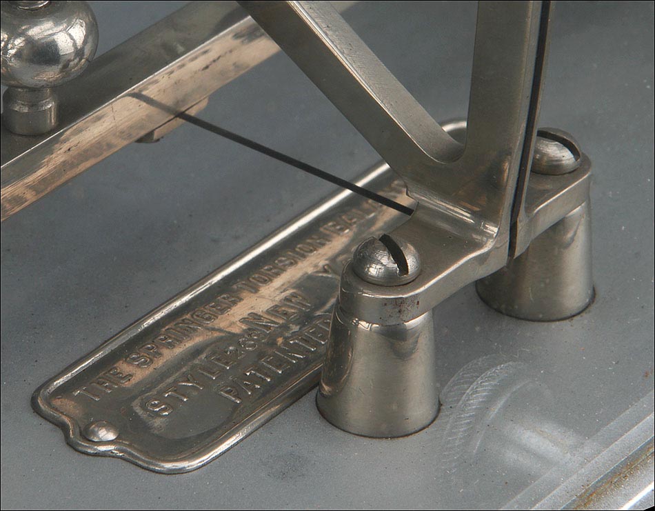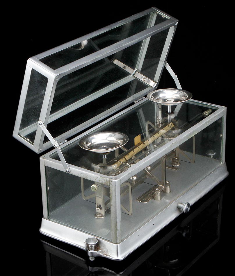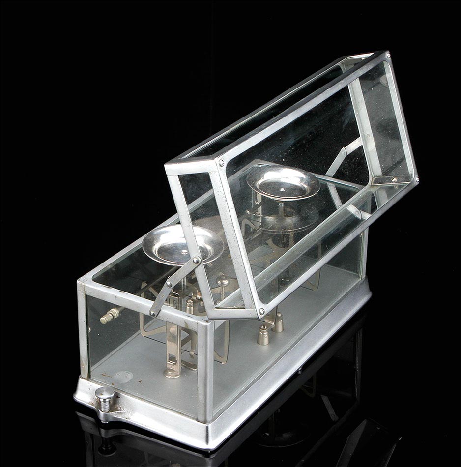 Delicada balanza de torsión antigua para uso en laboratorio, fabricada en Nueva York alrededor del año 1900. La balanza es una pieza de la máxima precisión, magníficamente conservada y en perfecto funcionamiento. En origen, estos instrumentos se utilizaban para definir cuánta fuerza (en Newtons) es requerida para provocar la torsión de la balanza hacia un cierto ángulo. La balanza de torsión fue inventada de por el físico francés Charles-Augustin de Coulomb en el año 1777, que la empleó para medir la atracción eléctrica y magnética. Casi simultáneamente, un instrumento similar fue diseñado por el geólogo británico John Michell, y mejorado por el químico y físico Henry Cavendish. La balanza que vemos en las fotos es de metal plateado y lleva una placa con el nombre del fabricante grabado: THE SPRINGER TORSION BALANCE CO y el año de patente de 1882. Para manejar la balanza es posible accionar la palanquita situada en el lado derecho del aparato. El peso máximo que marca la balanza es de 500 g. THE SPRINGER TORSION BALANCE CO, fue fundada en 1897. Cinco años más tarde, en 1902, cambió su nombre por The Torsion Balance Co. Esta balanza es de estos primeros 5 años.