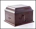 Antiguo gramófono de sobremesa La Voz de su Amo modelo 103, original de época y en excelente estado de conservación. Se trata de una pieza fabricada en Inglaterra en 1925 y funcionando a la perfección. El motor ha sido revisado a fondo y el gramófono suena muy bien. La caja es de madera de roble maciza y lleva un acabado oscuro color nogal, en muy buenas condiciones. Todas las partes del motor son originales de época y se encuentran en buen estado.