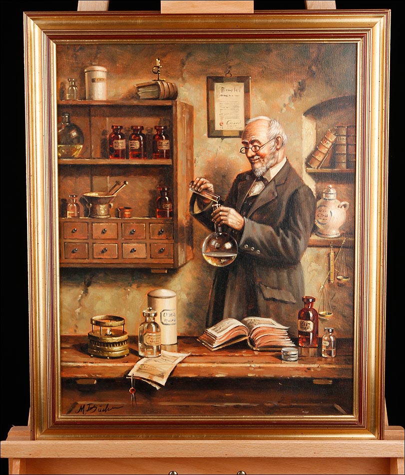 Oleo sobre lienzo de M. Bücher. “Farmacéutico”. 1970. Firmado |