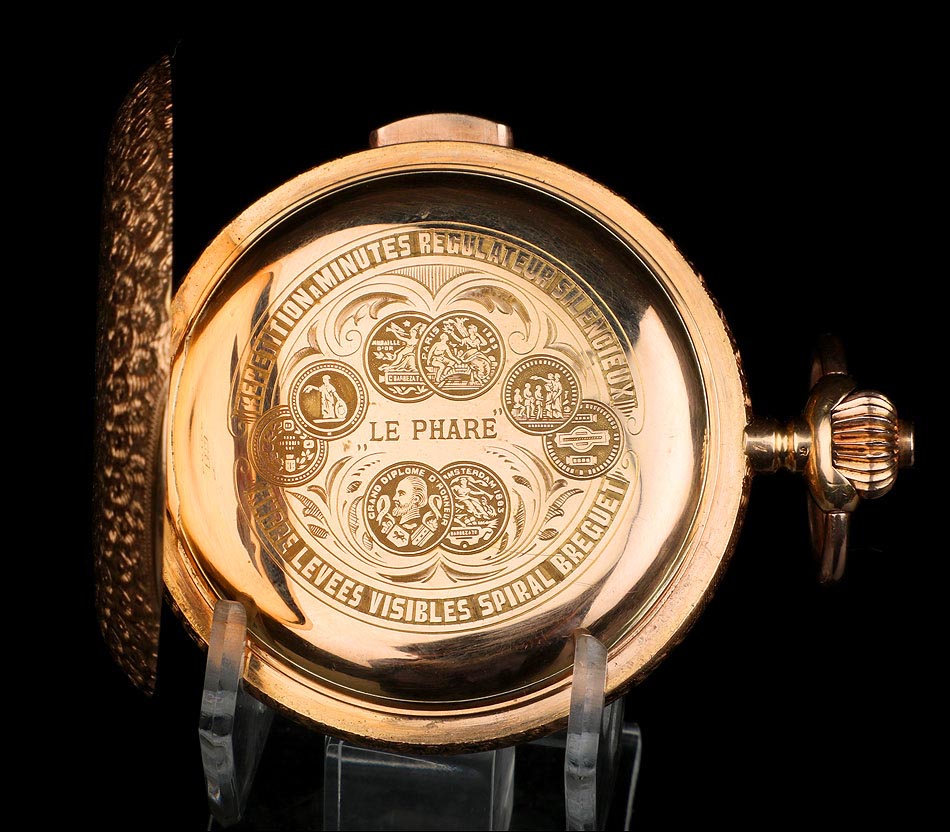 Reloj de Bolsilllo Antiguo. Sonería a Minutos. Le Phare, Oro de 18K. Suiza, Principios del Siglo XX |