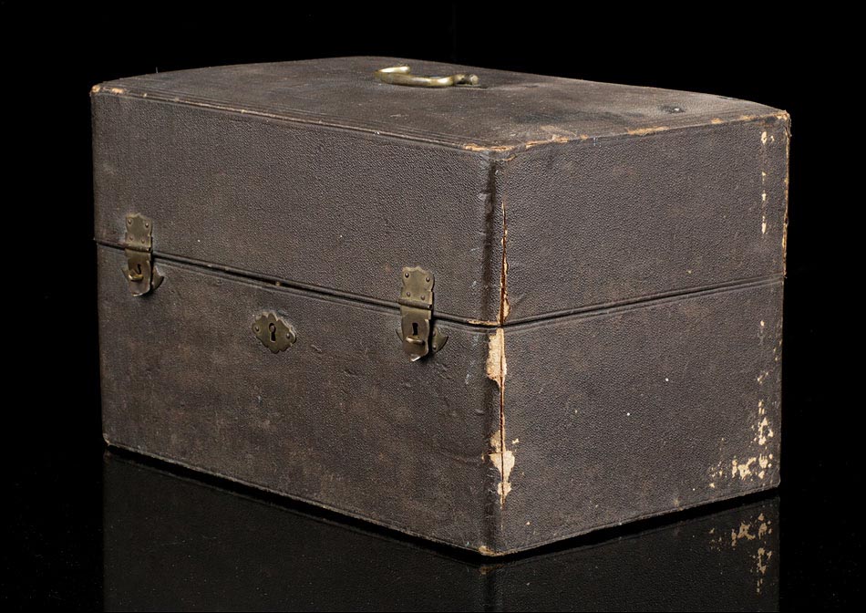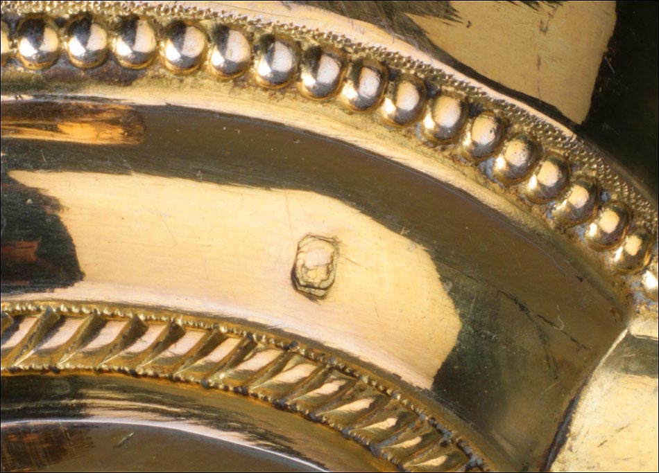 Espectacular cáliz antiguo de plata maciza acompañado de su patena, con el estuche de guardado original de época y en muy buenas condiciones. Las tres piezas datan del siglo XIX y fueron realizadas en Francia. Tanto el cáliz como la patena llevan los contrastes que dan fe de la calidad de la plata y de su origen. El estado de conservación del conjunto es excelente: ambas piezas conservan el acabado dorado original de época y no presentan desperfecto alguno.