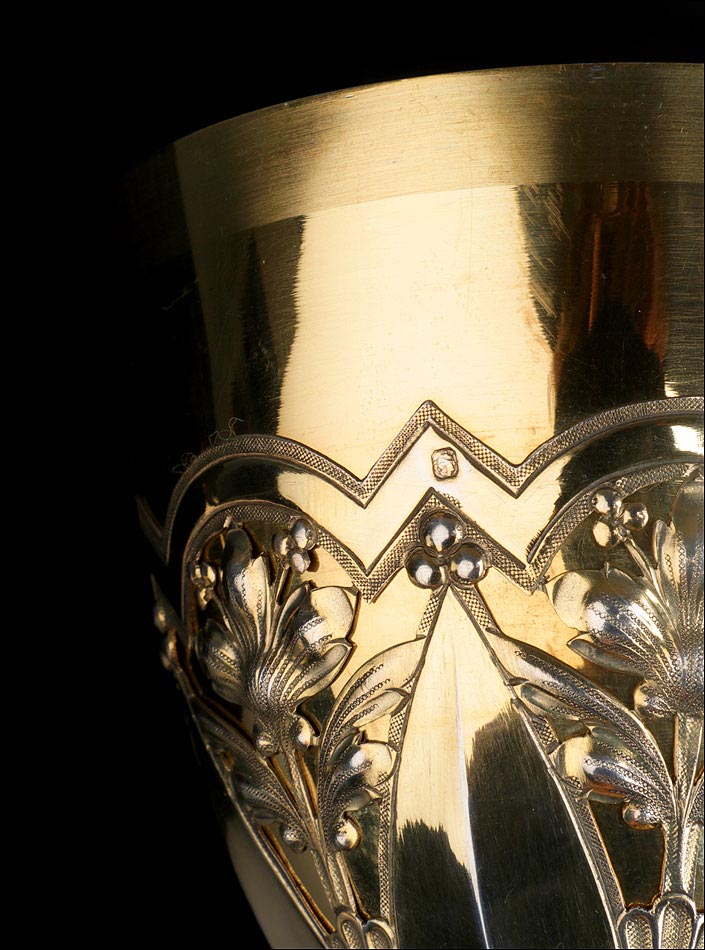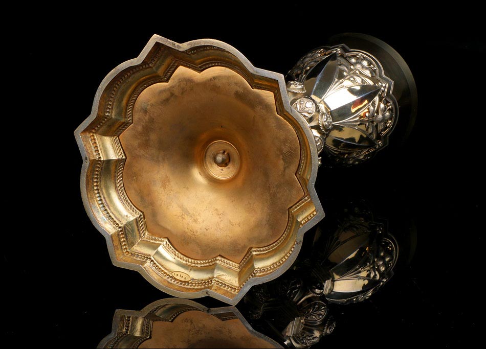 Cáliz de Plata Maciza Antiguo. Estuche original. Francia, S. XIX |