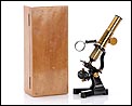 Su rareza y su hermoso diseño son las cualidades más llamativas de este raro microscopio antiguo, digno de figurar en cualquier colección de instrumentos científicos de principios de siglo.