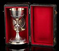 Cáliz Antiguo de Plata Maciza y Estuche. Francia, Circa 1900 |