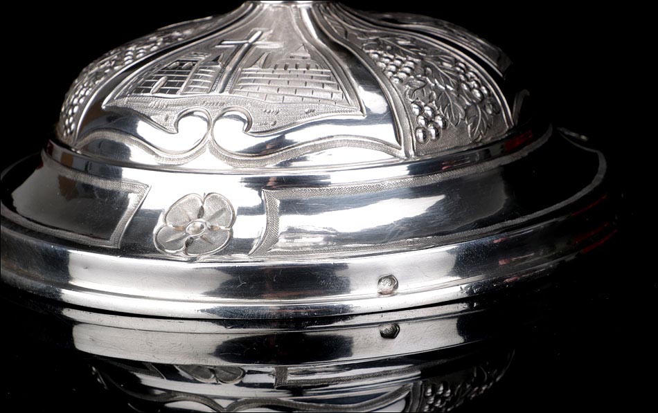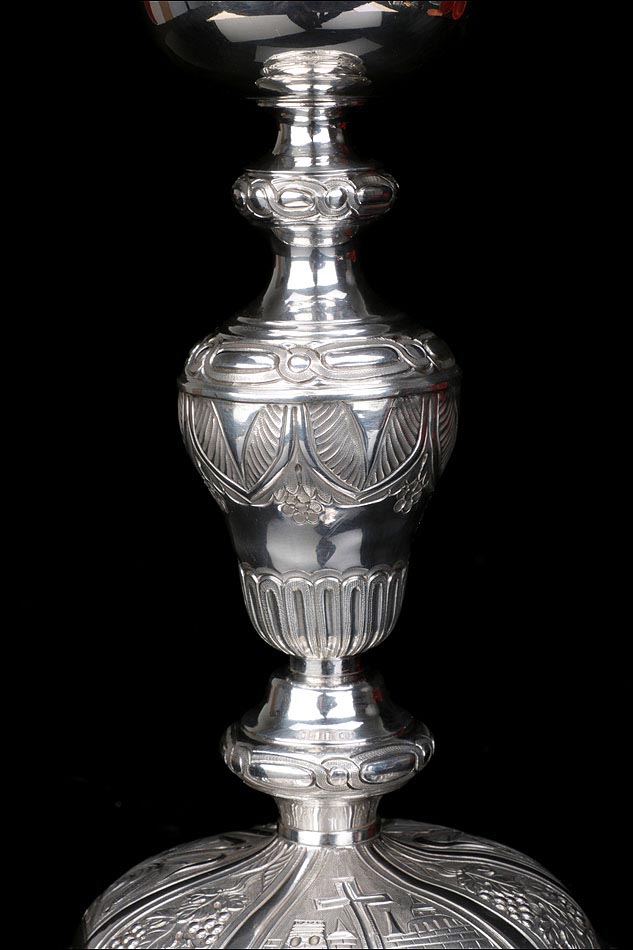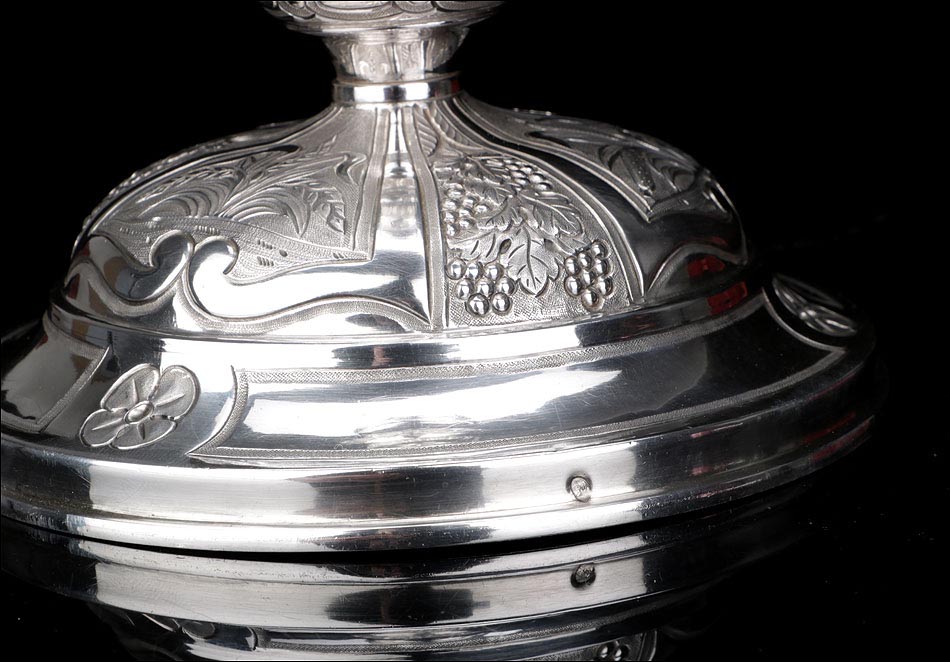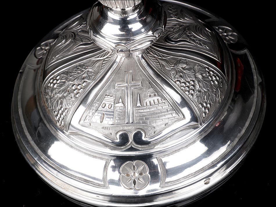 La hermosa presencia de este cáliz antiguo de plata maciza lo hace digno de figurar en la colección de cualquier museo de arte sacro. Es un artículo exclusivo, destinado a pasar de generación en generación.