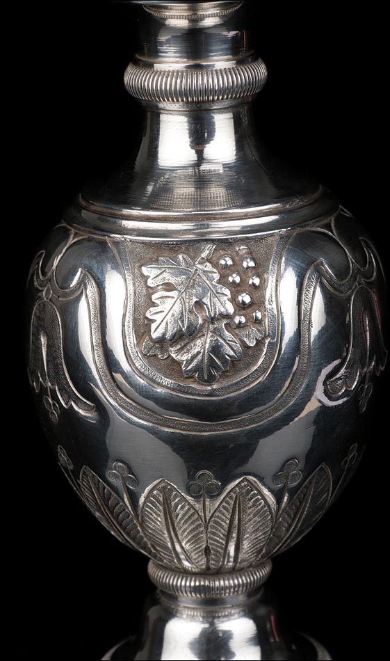Este antiguo cáliz de plata, de belleza atemporal y estilo elegante, destacará en una vitrina de antigüedades religiosas por su atractivo diseño y su calidad.