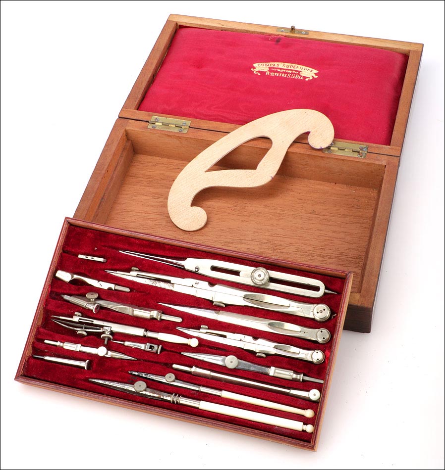 Antiguo Estuche de Compases para Arquitecto o Ingeniero. Francia, Circa 1900 |