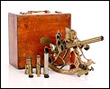 Fantástico sextante marino Heath & Co. original de principios del siglo XX (año 1919), procedente de Inglaterra y en su estuche original de madera de caoba. Se trata de un artículo de altísima calidad, con todas sus piezas y componentes de época y en perfecto estado de funcionamiento. El sextante está fabricado en latón y va acompañado de varias lentes y oculares. El latón se muestra en magnífico estado de conservación, sin signos de óxido ni partes deterioradas. Todas las piezas se mueven fácilmente y con fluidez, convirtiendo al sextante en un artículo tan decorativo como funcional. Además, el aparato va acompañado de su llave de ajuste original. En la base del arco graduado podemos ver la inscripción HEAT & CO. LTD – NEW ELTHAM LONDON y el número Q 555, ambos grabados en el latón.