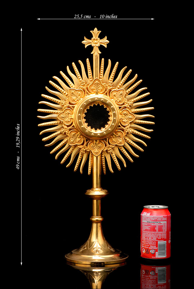 Preciosa Custodia Antigua en Latón Dorado. Francia siglo XIX |