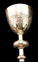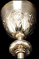 Su estilizada belleza hace de este antiguo cáliz de plata maciza una pieza muy atractiva, delicada y original.