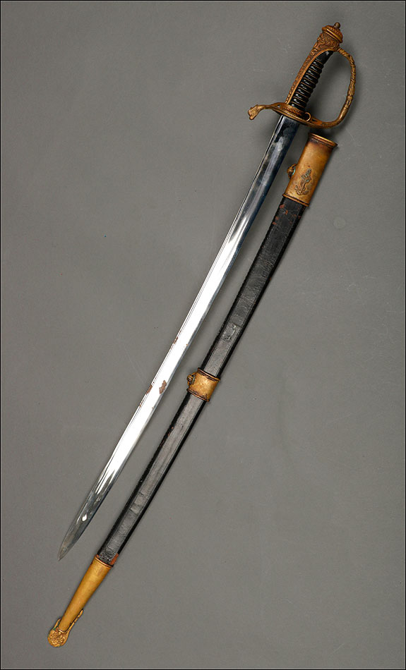 Auténtica y hermosa, esta antigua espada de oficial de la marina francesa sigue siendo tan atractiva como cuando fuera fabricada, hace más de cien años.
