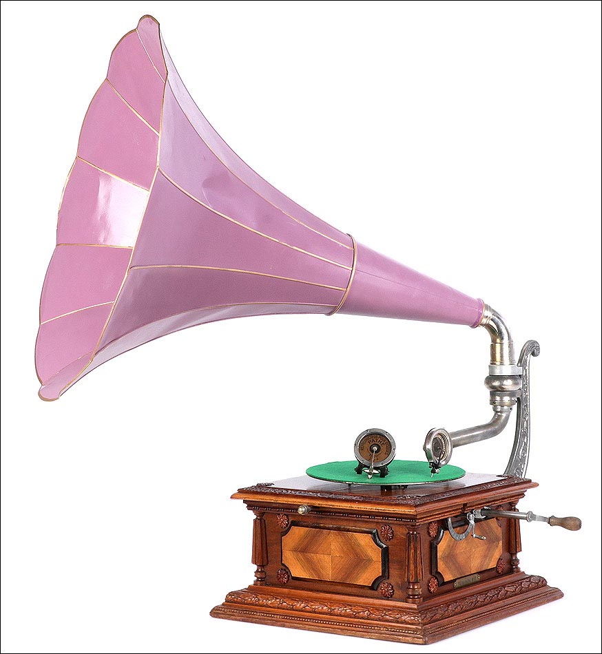 Antiguo Gramófono Pathephone 12 con Dos Reproductores. Francia, 1910. |