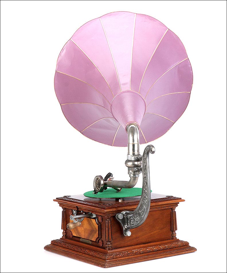 La belleza de este antiguo gramófono Pathephone 12 con dos reproductores solo se puede equiparar a su excelente sonido. Es una pieza exclusiva que brillará en cualquier salón.