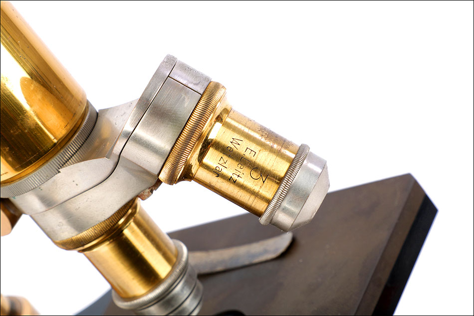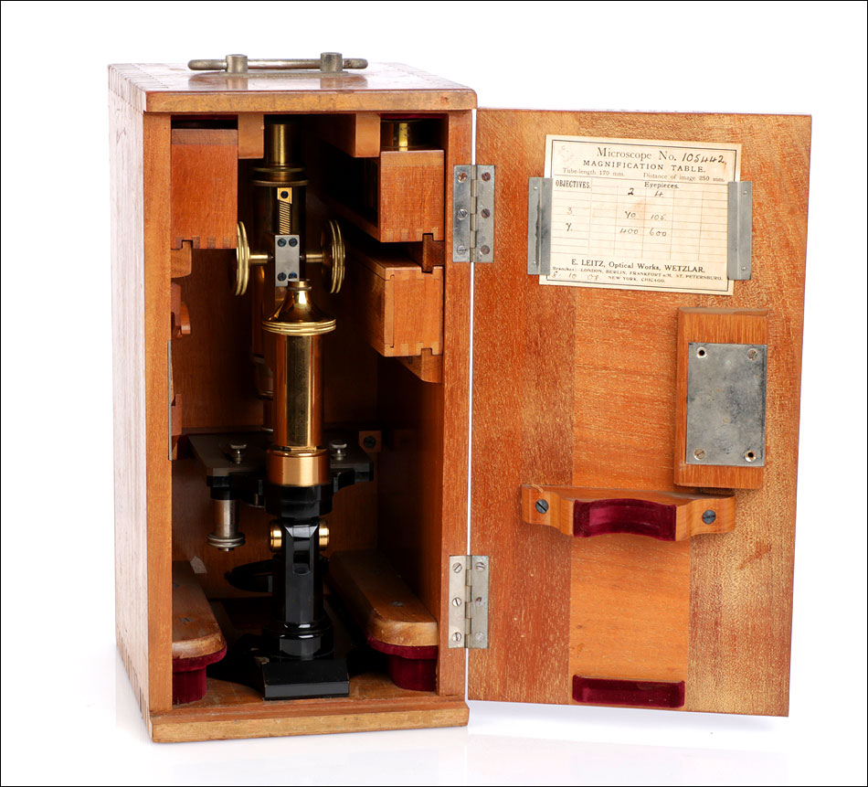 Los inicios de la célebre firma de material óptico Enrst Leitz Wetzlar se encuentran en la primera mitad del siglo XIX, cuando Carl Kellner, mecánico y matemático autodidacta, fundó el Carl Kellner Optisches Institut en la localidad alemana de Wetzlar. Tras su temprana muerte, su viuda continuó con el negocio. En 1864, el ingeniero mecánico Ernst Leitz entró en la empresa; tras solo cinco años se hizo con el control y cambió su nombre por el de Ernst Leitz Wetlzar. Leitz llevó la empresa al éxito tras introducir mejoras como la producción en serie, que logró un gran incremento del volumen de ventas a partir de 1871. Los microscopios de Leitz incluían mejoras técnicas que aumentaban su calidad, lo que hizo que para finales del siglo XIX la empresa tuviera ya un sólido prestigio a nivel mundial. Ernst Leitz murió en 1920, y la empresa pasó a manos de su hijo. Además de por la fabricación de microscopios y material óptico, la firma Leitz aumentó considerablemente su fama gracias a la producción de las célebres cámaras fotográficas Leica (abreviatura de Leitz Camera).